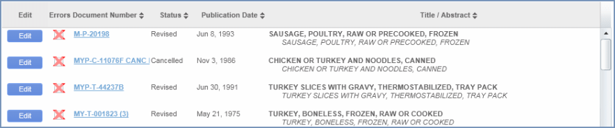 Once your file has been uploaded, the results are displayed in a results list. If My Publications finds errors on the list, an error message is displayed, and records with errors are listed first and marked with a red X.